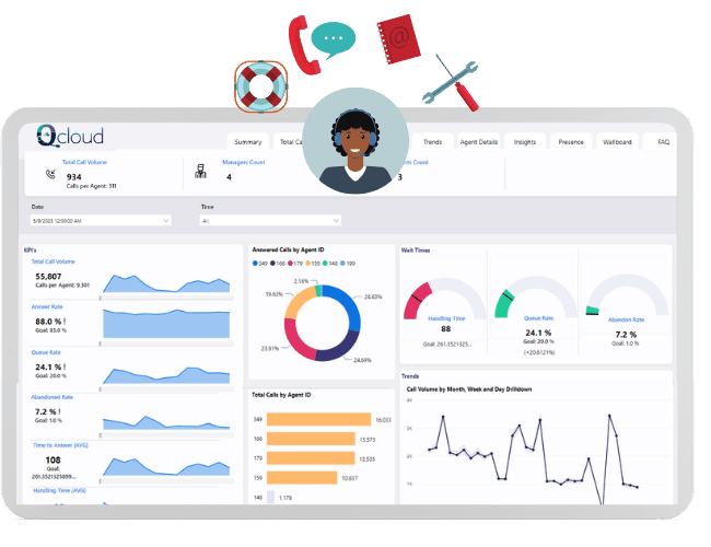 Qcloud transforms your raw Cisco data into visually compelling charts, graphs, and diagrams that you can customize. Gain immediate insights into the performace of your entire call center with visual representation of trends and patterns.